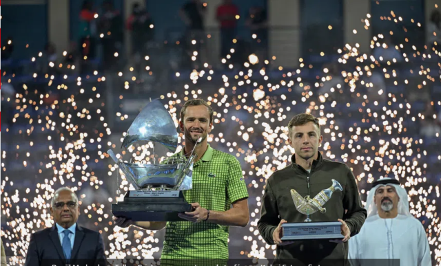 After the final was in serious danger of not taking place due to the US and Israeli bombings of Iran and Iran’s response against various targets in that region of the globe, Russian Daniil Medvedev (ranked 11th) won the ATP 500 Dubai title on Saturday, benefiting from the withdrawal of Dutchman Tallon Griekspoor (ranked 25th), who was unable to play due to a muscle injury in his left thigh.
